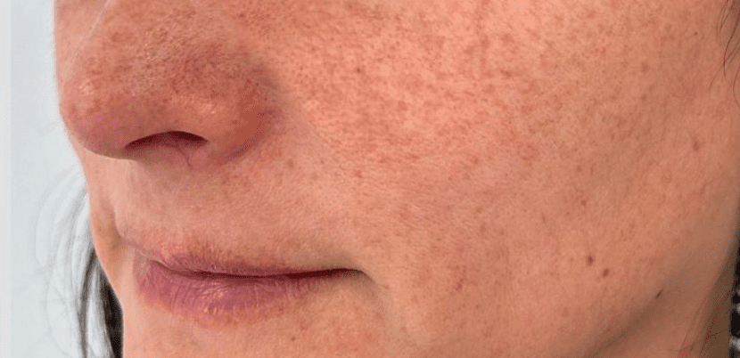 - Melasma: este tipo de mancha tiene un fuerte componente hormonal, por lo que suele aparecer en mujeres en edad fértil o embarazadas. Se activa con la exposición solar y afecta principalmente a la zona del labio superior, las mejillas y la frente en forma de máculas marrones, una especie de sombreado difuso.